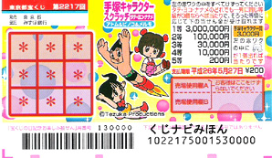 | 手塚キャラクタースクラッチの種類はタテ・ヨコ・ナナメ。このスクラッチ宝くじのアトム&ピノコ&メルモの見本画像と遊び方の解説です。 Sponsored Links |