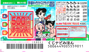 | 手塚キャラクタースクラッチの種類はトリプルマッチ。このスクラッチ宝くじのアトム&サファイア&写楽保介の見本画像と遊び方の解説です。 Sponsored Links |