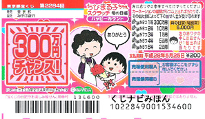 ちびまる子ちゃんスクラッチの種類はハッピーカウント。このスクラッチ宝くじの雪あそび編、クリスマス編、母の日編の見本画像と遊び方の解説です。 |