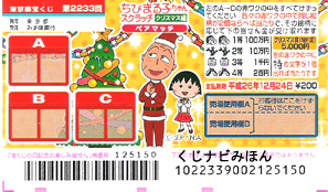 | ちびまる子ちゃんスクラッチの種類はペアマッチ。このスクラッチ宝くじのバレンタイン編、クリスマス編の見本画像と遊び方の解説です。 Sponsored Links |